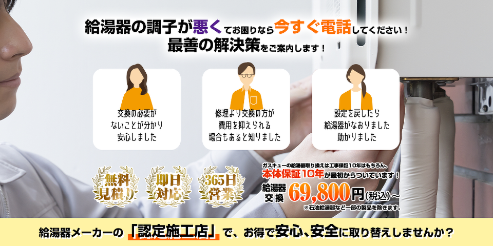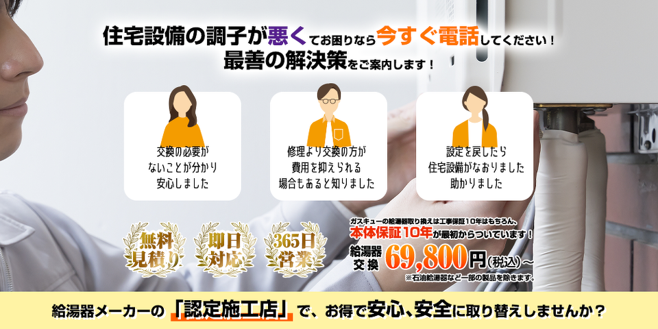 名古屋市をはじめとする愛知県内の戸建て・マンションの給湯・ガス機器の設置・交換ならGAS-Q(ガスキュー)にお任せください。
