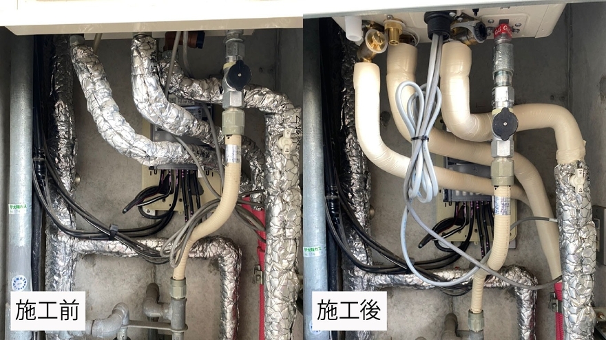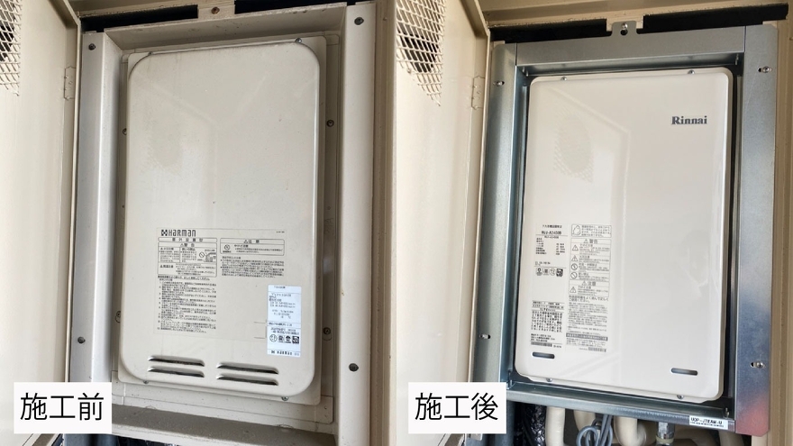 明石市にてマンションのハーマン製給湯器YV2439RMをリンナイ製に交換
