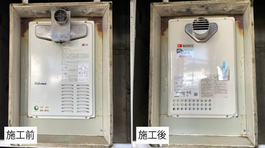 既設の給湯器の後継機種を選定して設置させていただきました。