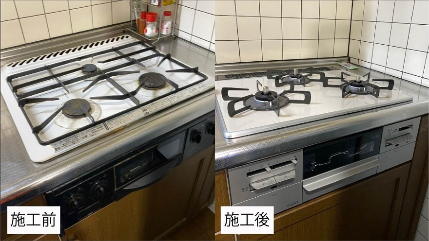 神戸市須磨区マンションにおいてリンナイ製ガスコンロRS31W27P14DGVWに交換