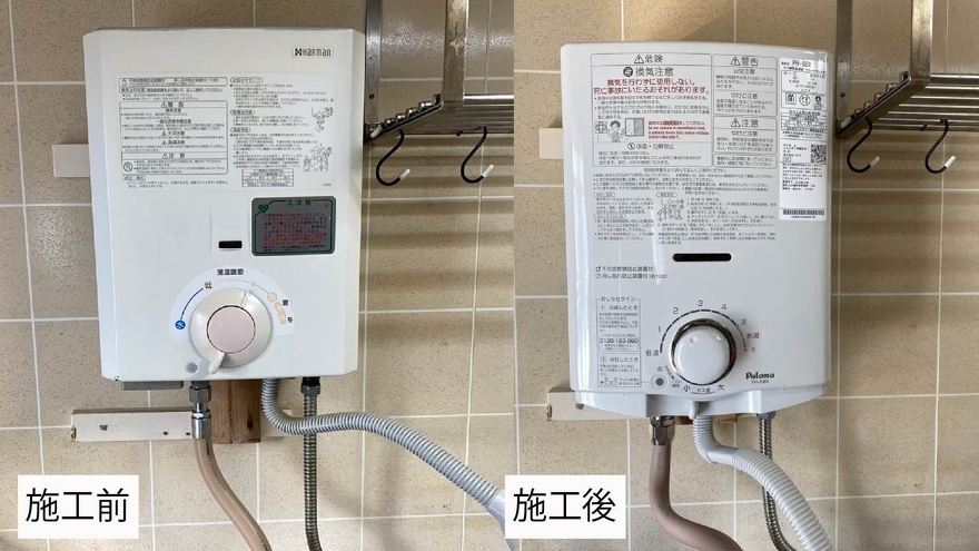 富田林市内マンションにおいて瞬間湯沸かし器YR543からPH-5BXに交換