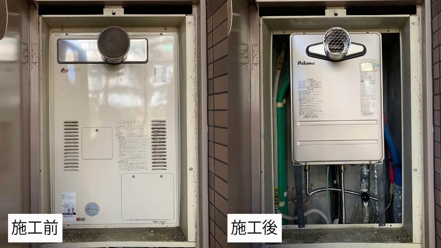 仮設用給湯器の交換をさせていただきました。