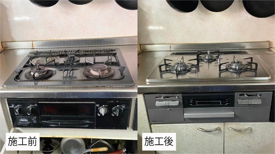 西宮市内戸建てにおいてガスコンロN3WT6RWTSKSIに交換