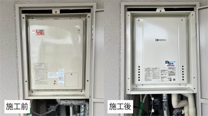 既設の給湯器が、マンションのパイプシャフト内に設置する