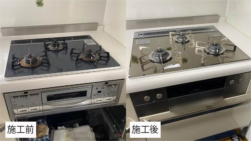 三木市内で戸建てにおいてガスコンロN3S12PWASKSTESへの交換