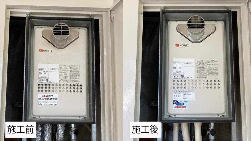 既設がマンションのPSに設置する前方排気のノーリツの給湯器でしたので