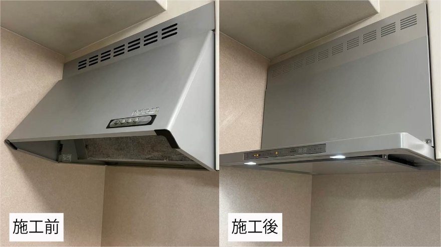 神戸市長田区のマンションにおいてレンジフードBDR-4HE-752VからNFG7S21MSIに交換