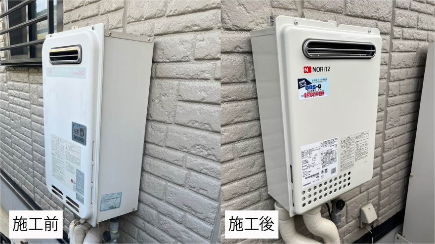 宝塚市内戸建てにおける給湯器GQ-2439WS-1と浴室乾燥暖房機BDV-3302UKNC-DA-BLへの交換