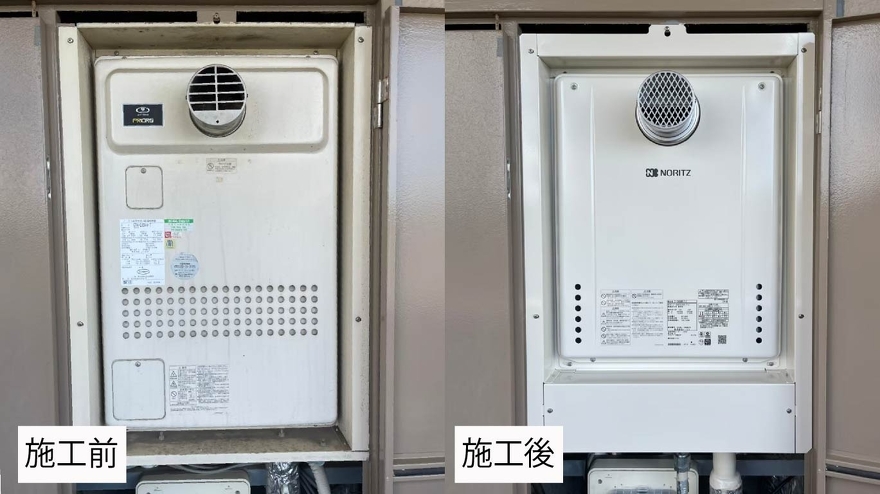今回は暖房機能付きから無しの給湯器へと交換させていただきました。