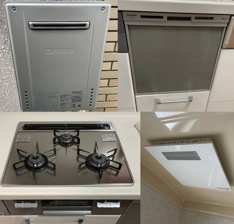 | 商品 | [商品名] 給湯器(壁掛) [メーカー] ノーリツ [品番] GT-C2462SAWX-2 [リモコン] RC-J101Eマルチセット [商品名] ビルトイン食洗器 [メーカー] Panasonic [品番] NP-45RS9S [商品名] ビルトインガスコンロ [メーカー] ノーリツ