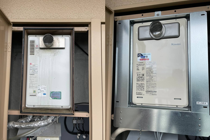 伊丹市内にあるマンションにて高温差し湯給湯器RUJ-A2010T-L-80を交換