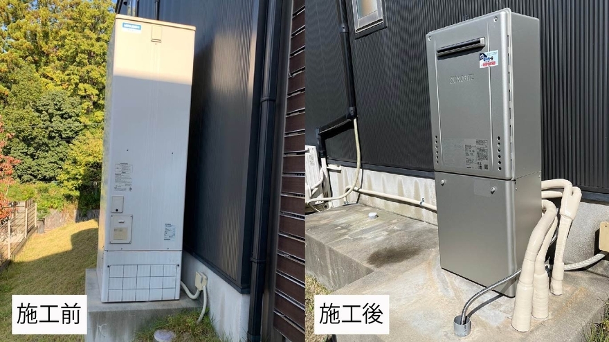 今回はエコキュートからガス給湯器に変更して