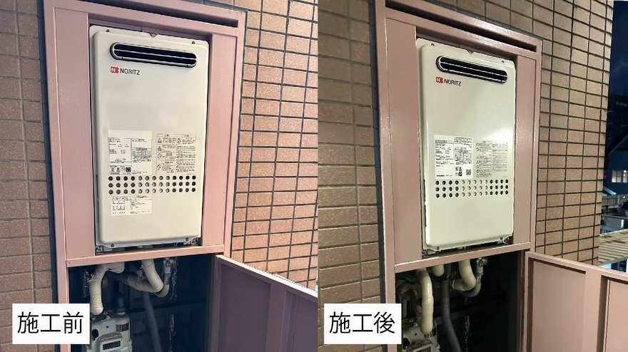 マンション等の集合住宅に設置する前方排気タイプの給湯器です。