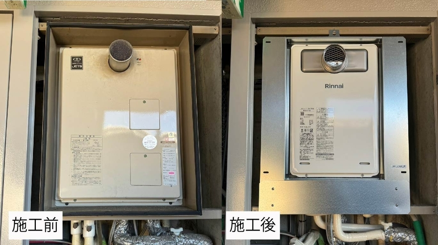 今回はこちらをリンナイ製高温水供給式給湯器(高温差し湯タイプ)「RUJ-A1610T」に交換させていただきました。