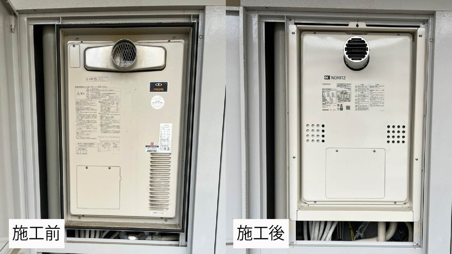 こちらをノーリツ製暖房機能付き追焚ふろ給湯器「GTH-2454AW3H-T BL」に交換しました。