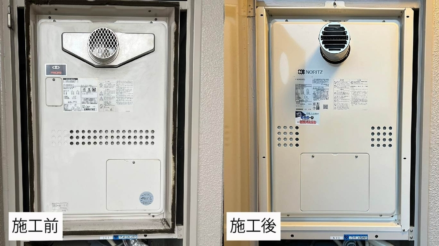 今回設置した給湯器は、既設と同じ24号と大きい号数になります。