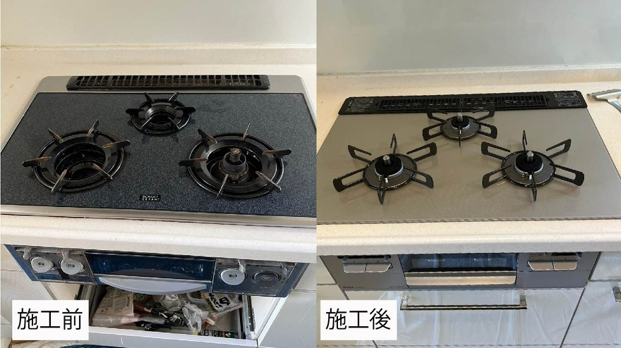 今回、交換工事させていただいたのはリンナイ製のガスコンロ「RS71W35T2DGAVW(幅75cm)」と