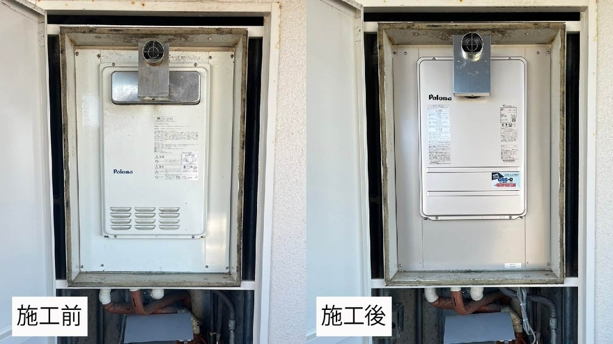 給湯器本体の大きさが変わっておりますので、扉内ケースで補正をしております。