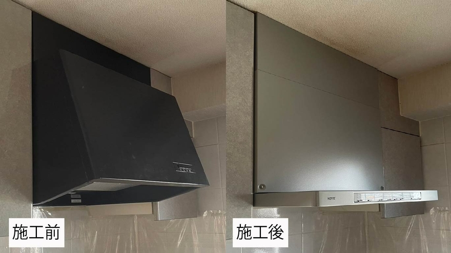 ブーツ型レンジフードからノーリツ クララ シルバー「NFG6S21MSI」に交換いたしました。