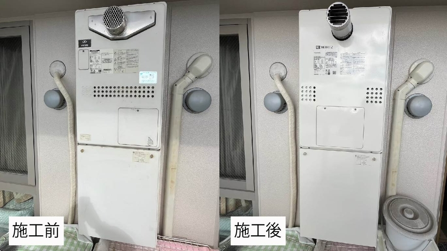 高層階のマンションでしたので、前方排気型の給湯器を設置しております。