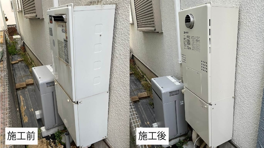 月々のガス代がお安くなる、エコジョーズという給湯器を設置いたしました。