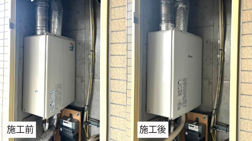 給湯器本体上部の排気筒で、給気・排気を行っております。