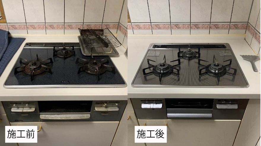 今回はお客様のガスコンロとレンジフードの交換をさせていただきました。