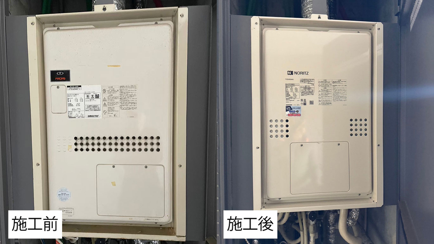こちらノーリツの給湯器とノーリツのガスコンロでございます。