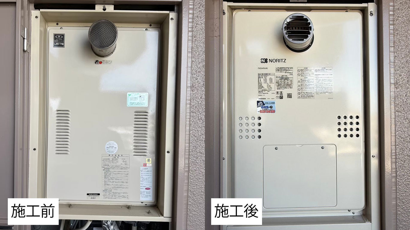 24号、扉内設置(丸排気)の暖房機能付き給湯器です。