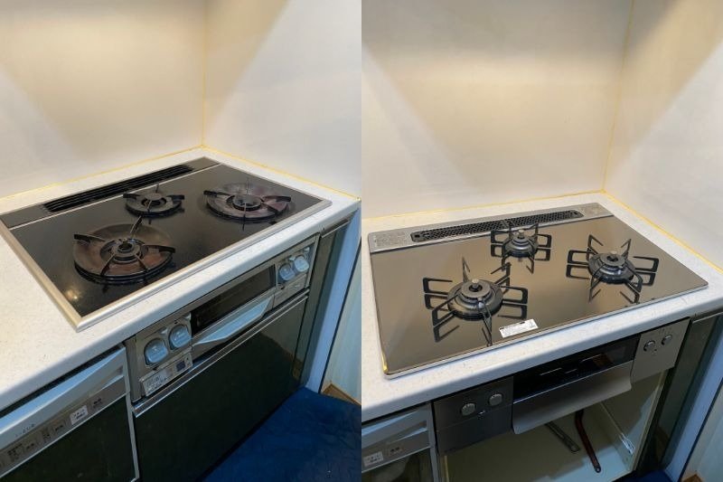 神戸市で灘区マンションにおける浴室乾燥暖房機BDV-4104AUKNC-J3・ビルトインガスコンロN3S13PWASKSTESの交換