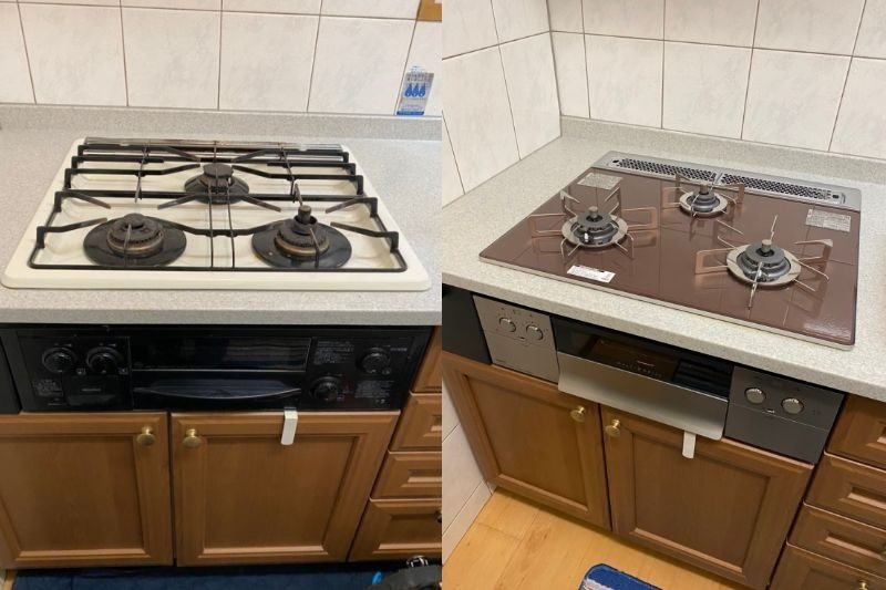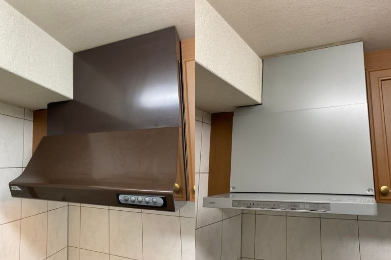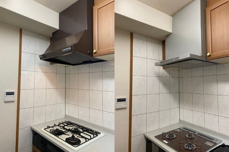 西宮市内マンションにおけるレンジフードNFG6S21MSI・ビルトインガスコンロN3S12PWASZSTESの交換