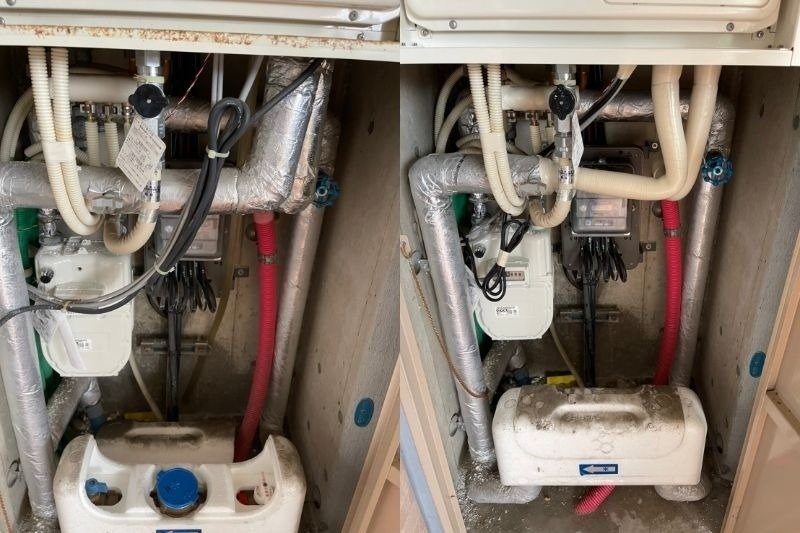 神戸市垂水区にてマンションの暖房機能付きふろ給湯器GTH-2444AWX3H-H-1・水栓TBV03445Jの交換