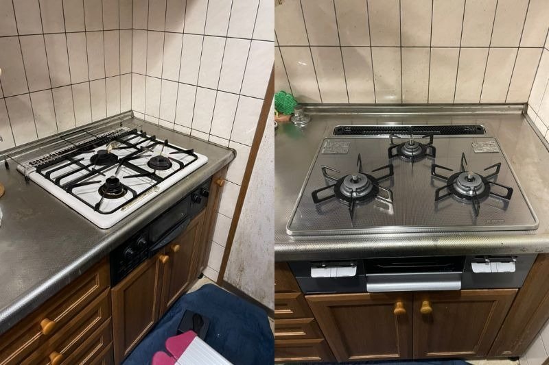 宝塚市内のマンションにてレンジフードNFG6S21MSI・ビルトインガスコンロN3WT6RWTSKSIへ交換