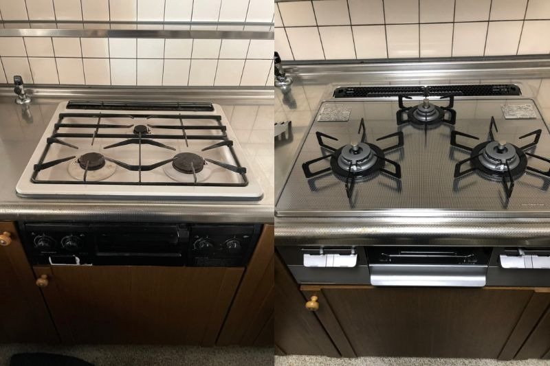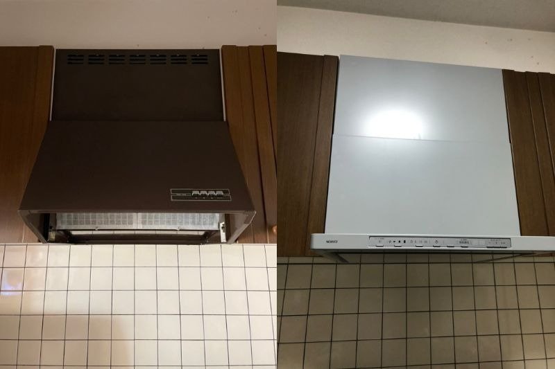 明石市にあるマンションでガスコンロN3WT6RWTSKSI・レンジフードNFG6S21MSI へ交換