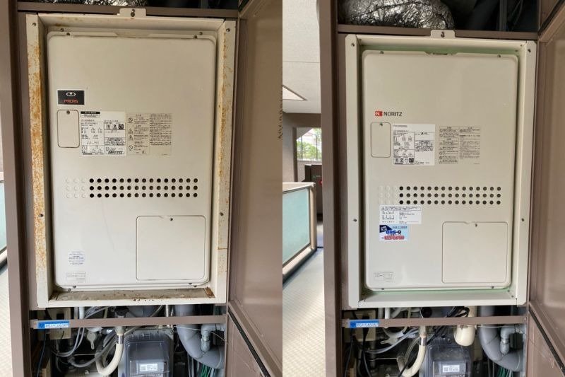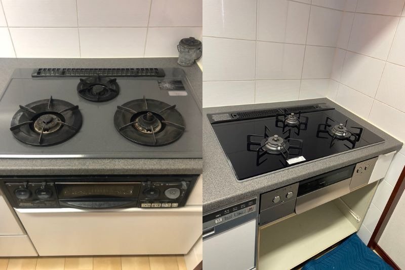 神戸市の垂水区マンションにて暖房機能付きふろ給湯器GTH-2444SAWX3H-H-1とガスコンロN3S12PWASSTEへの交換