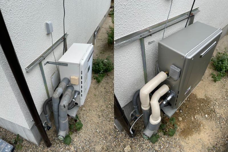 こちらは屋外の地面におく据置型の給湯器
