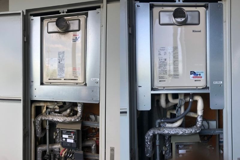 尼崎市内マンションで高温差し湯給湯器RUJ-A1610Tへ交換