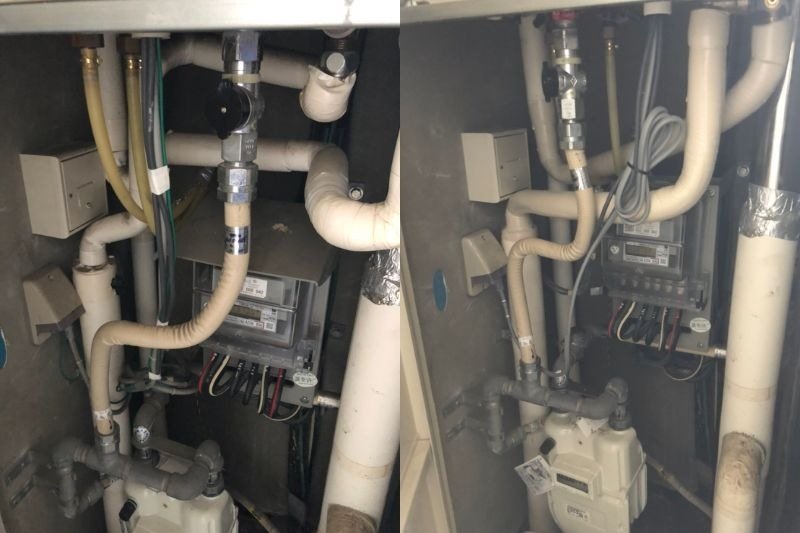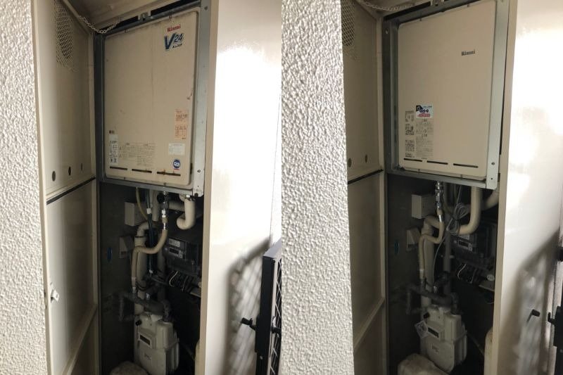 マンションの廊下に設置されている給湯器の