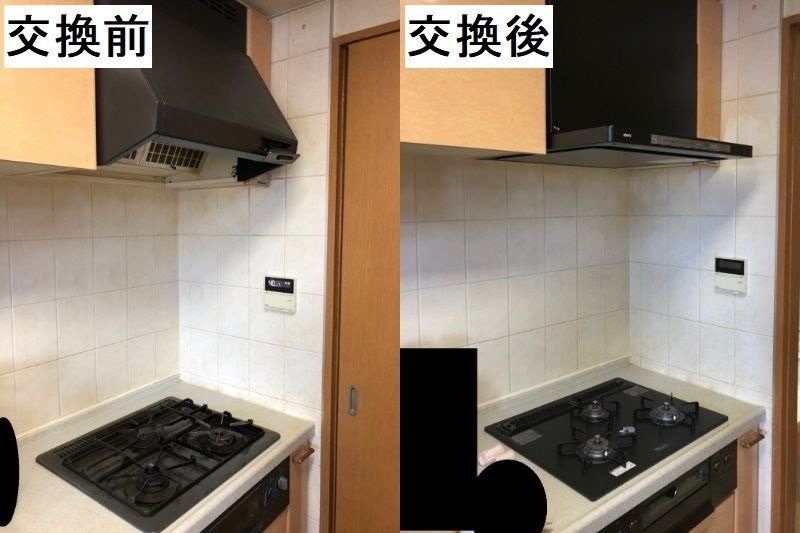 豊中市内の一戸建てにおいてガスコンロN3S12PWAAFBAEとレンジフードNFG6S21MBAへ交換