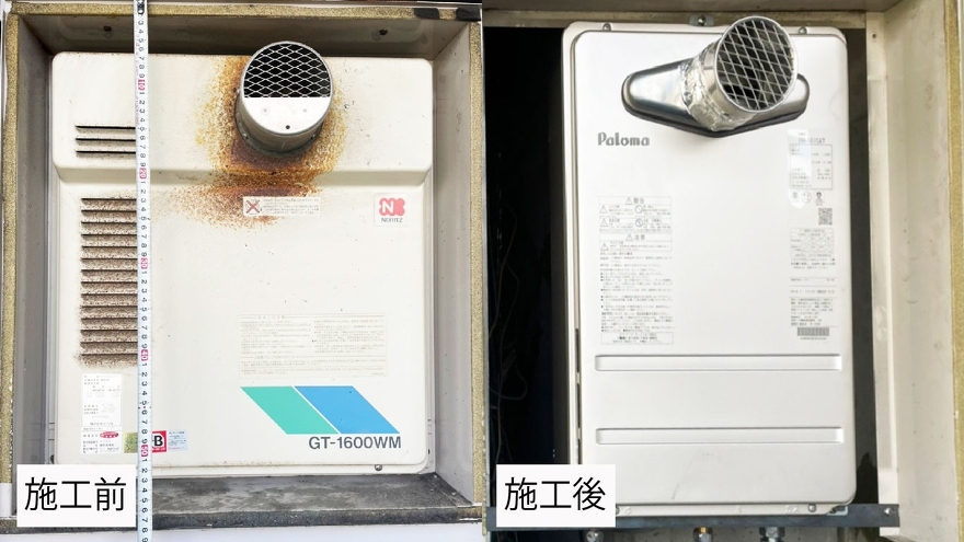 神戸市灘区にあるマンションで仮設用給湯器に交換