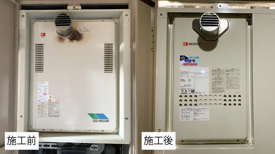 神戸市東灘区でマンションの高温差し湯給湯器GQ-1602AW-Tからの交換