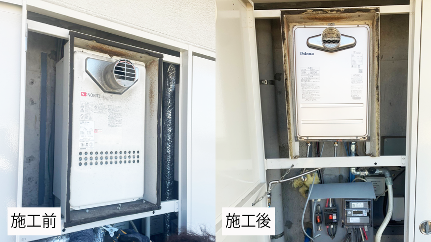 大阪市此花区マンションにおける仮設用給湯器への交換