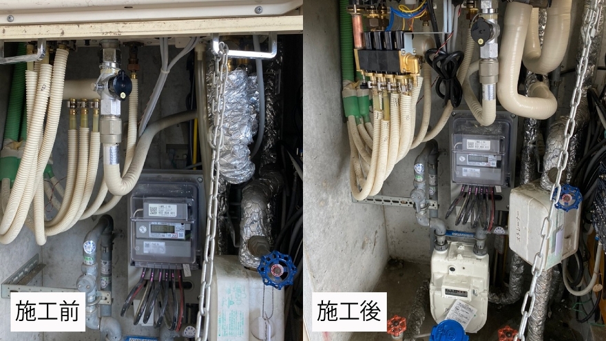 給湯器下部の配管部分もきれいに仕上げいたします。