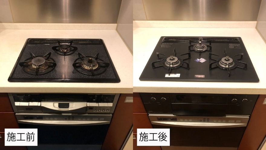 神戸市の東灘区マンションにおいてガスコンロN3S12PWAAFBAEに交換