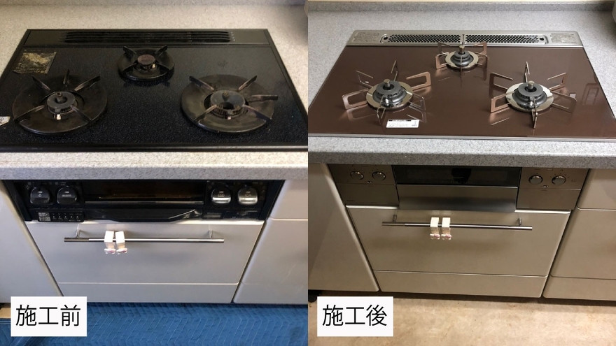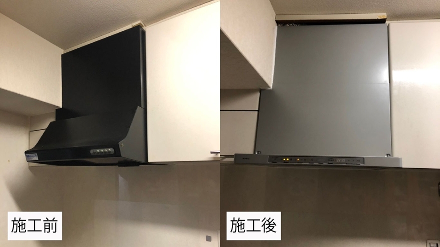 明石市内マンションでのコンロN3S13PWASZSTES・レンジフードNFG6S22MSIへの交換