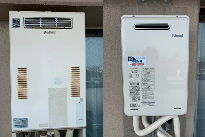 西宮市内のマンションにて高温差し湯給湯器RUJ-A1610Tへ交換