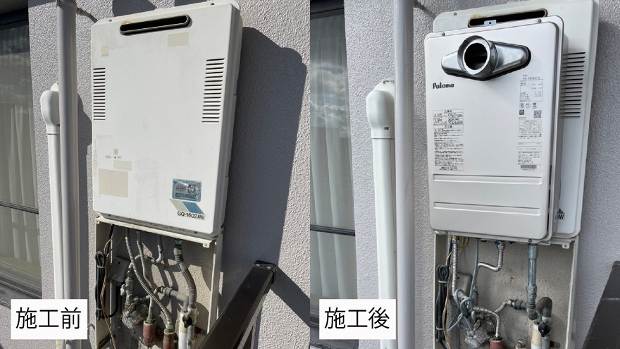 明石市内にあるマンションにおいて仮設用給湯器への交換