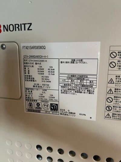 ノーリツ製の給湯器を交換・取替をさせていただきました