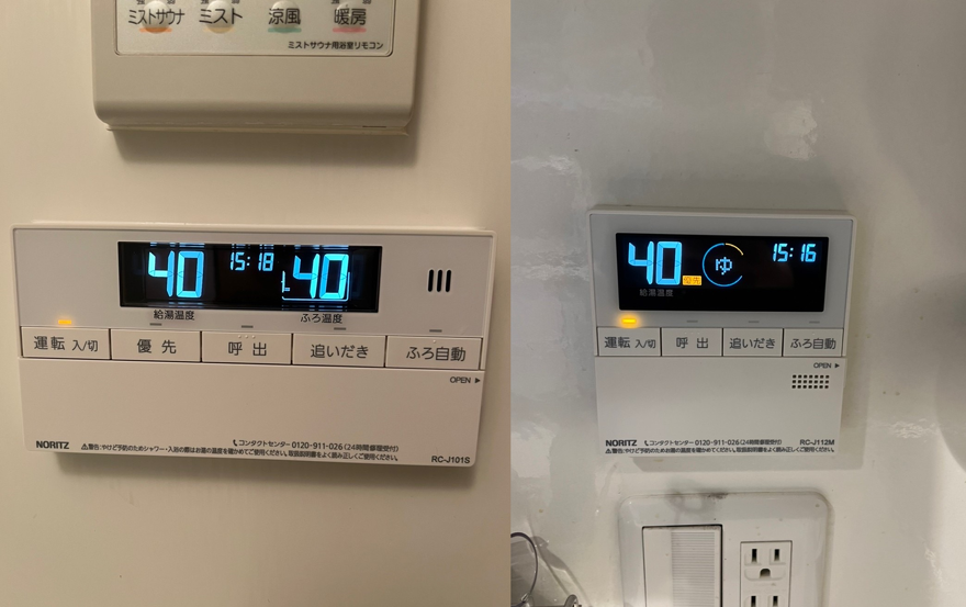 ノーリツ製の追焚暖房機能付きふろ給湯器です。