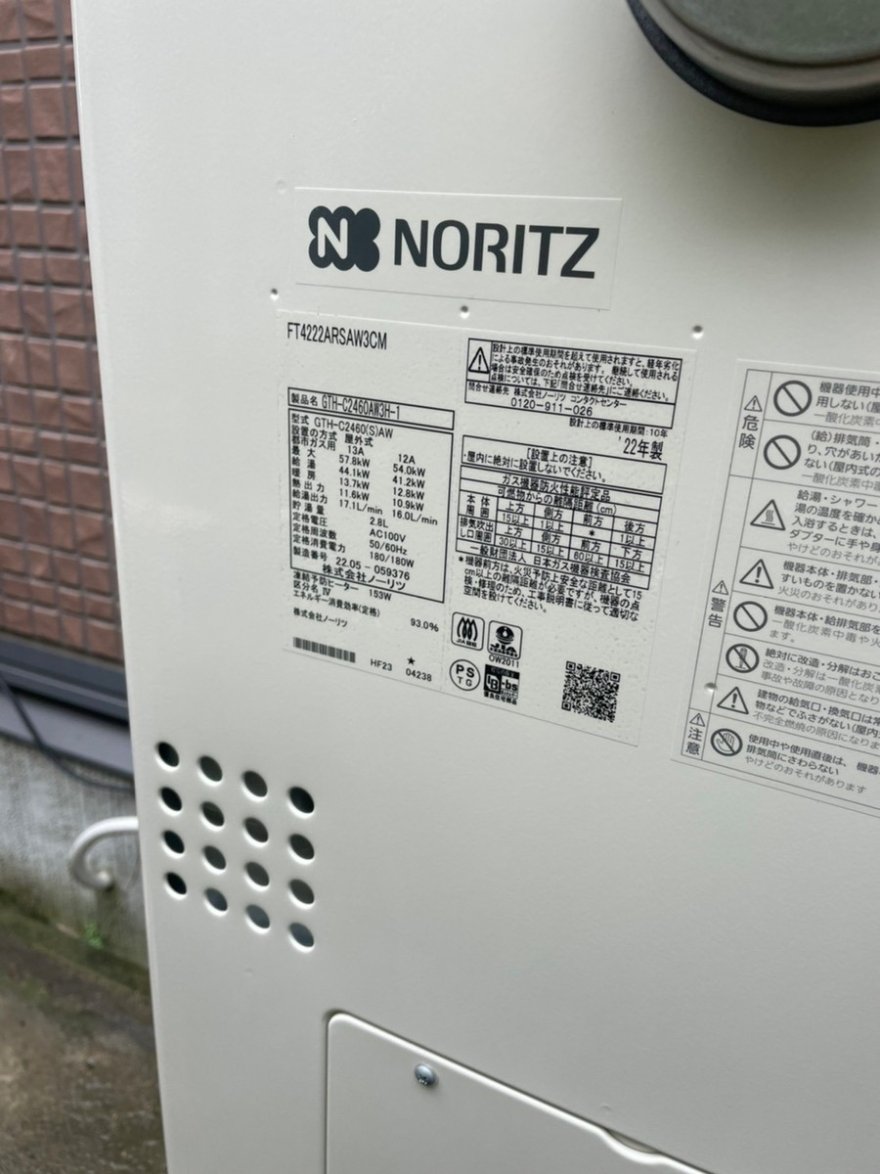 ノーリツ製の給湯器を交換・取替をさせていただきました。